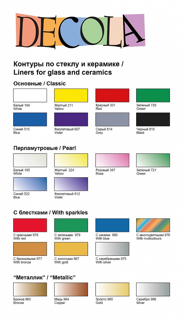 Они идеально подходят для использования с красками для стекла и керамики «Decola» и витражными красками. Также применяются в технике витражной росписи для: