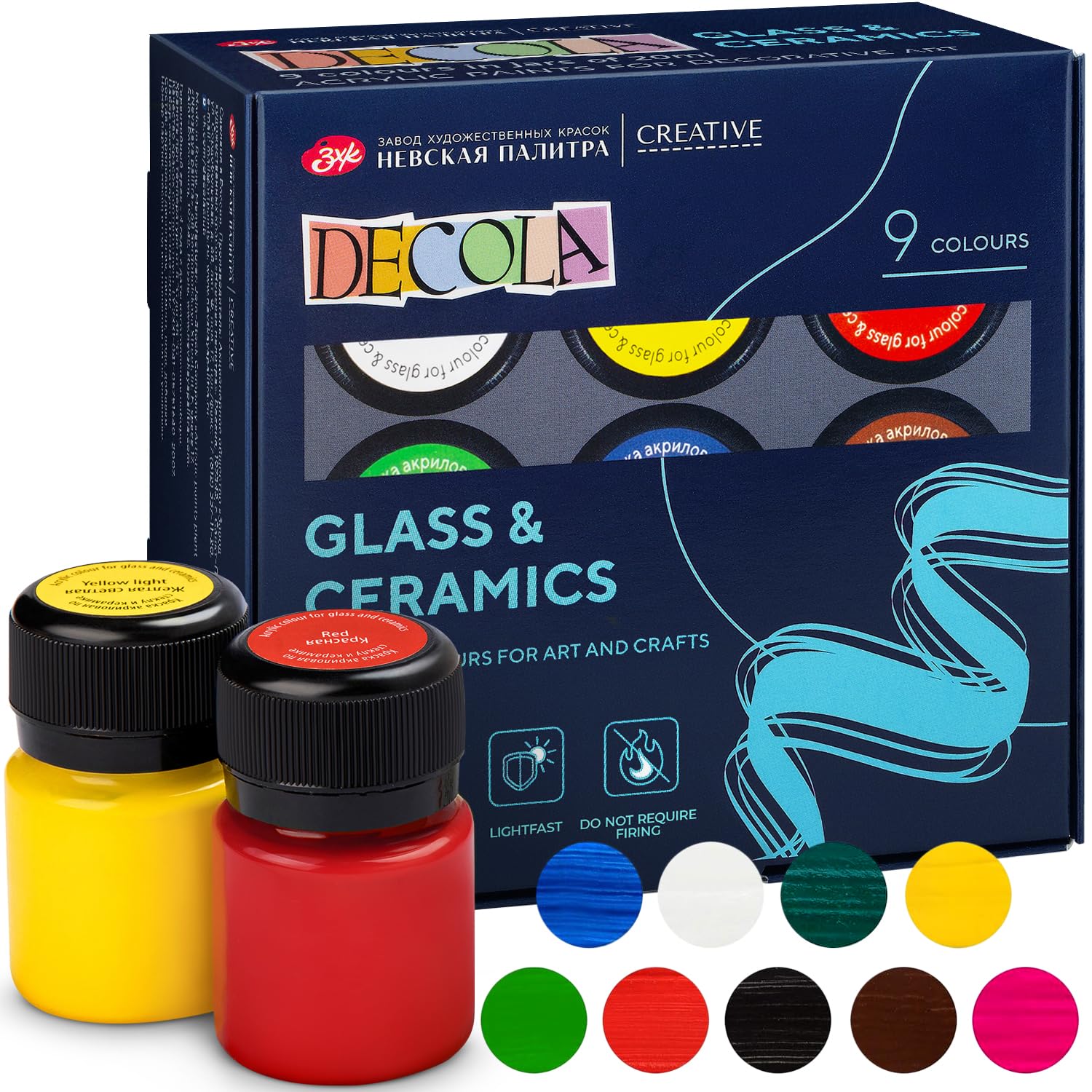Набор акриловых красок по стеклу/керамике DECOLA 9 шт х 20 мл, картон NP-4041113