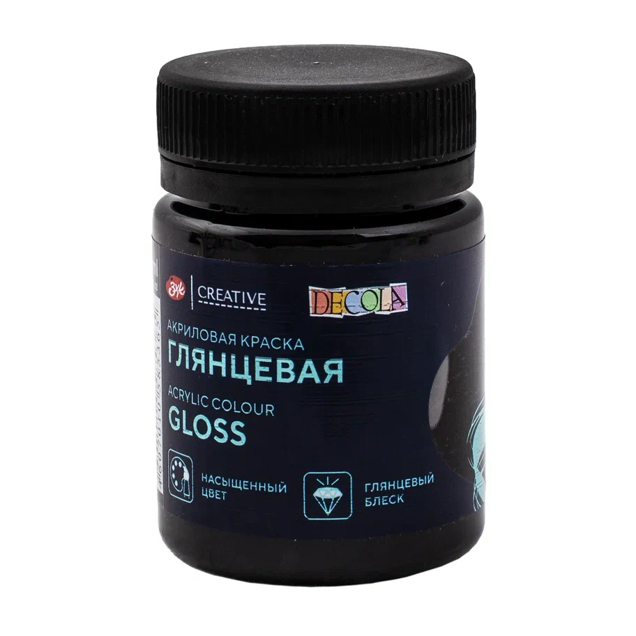 —Краска акриловая DECOLA глянцевая, банка 50 мл, 810 Черная NP-2928810