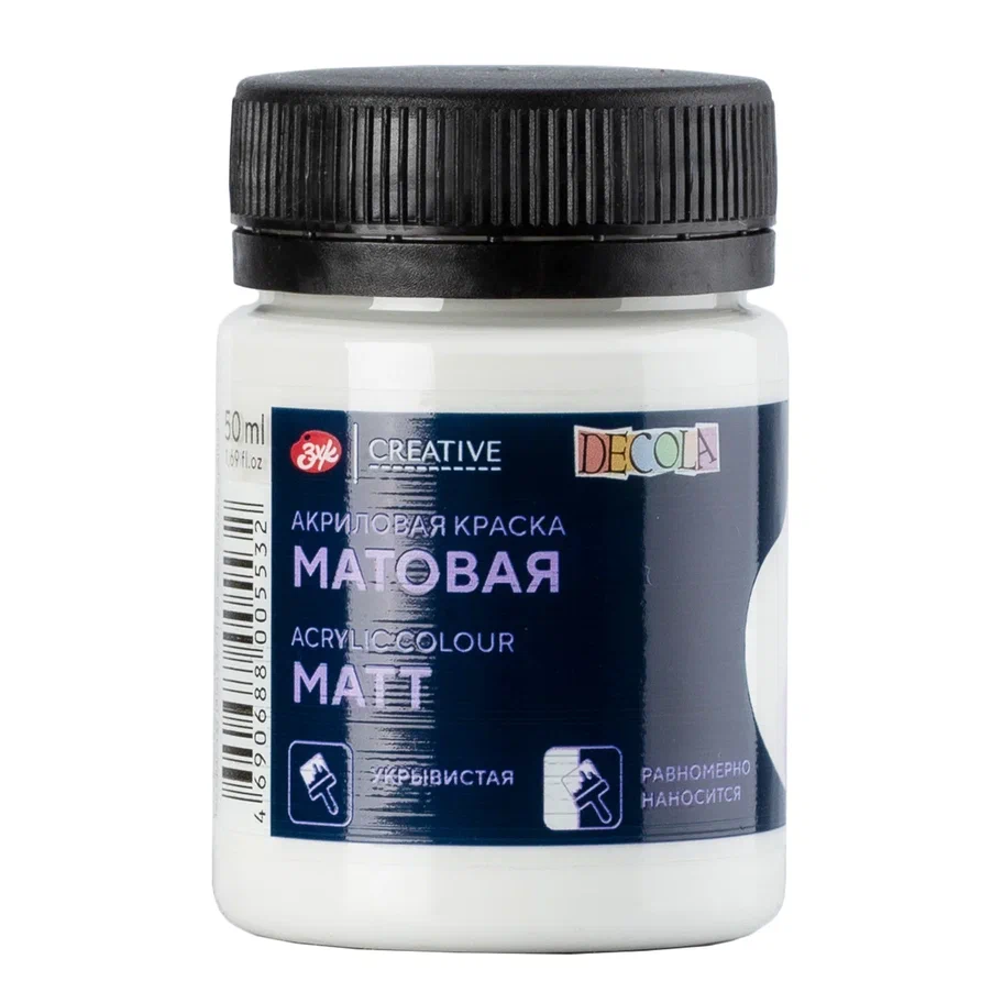 —Краска акриловая DECOLA матовая, банка 50 мл, 104 Белая NP-14328104