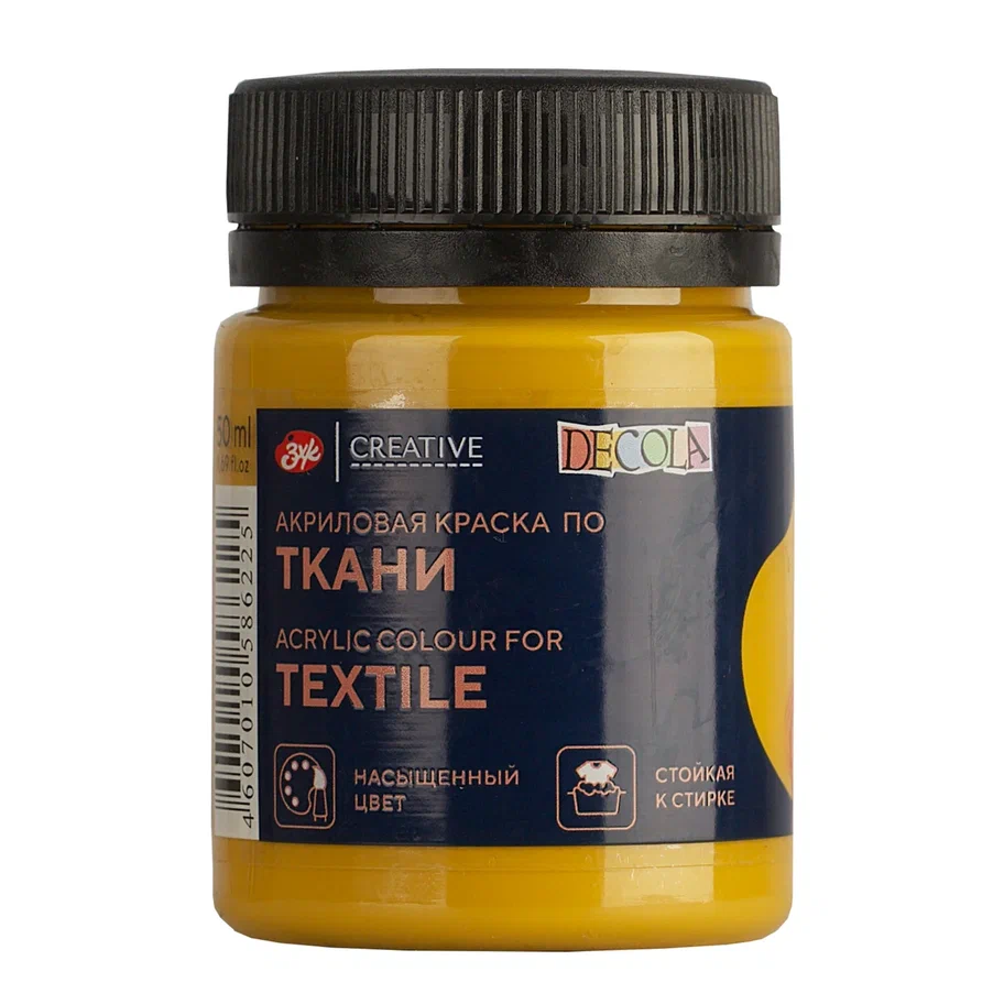 —Краска акриловая по ткани DECOLA банка 50 мл, 206 Охра светлая NP-4128206