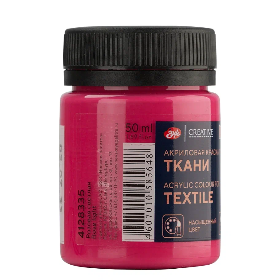 —Краска акриловая по ткани DECOLA банка 50 мл, 335 Розовая светлая NP-4128335