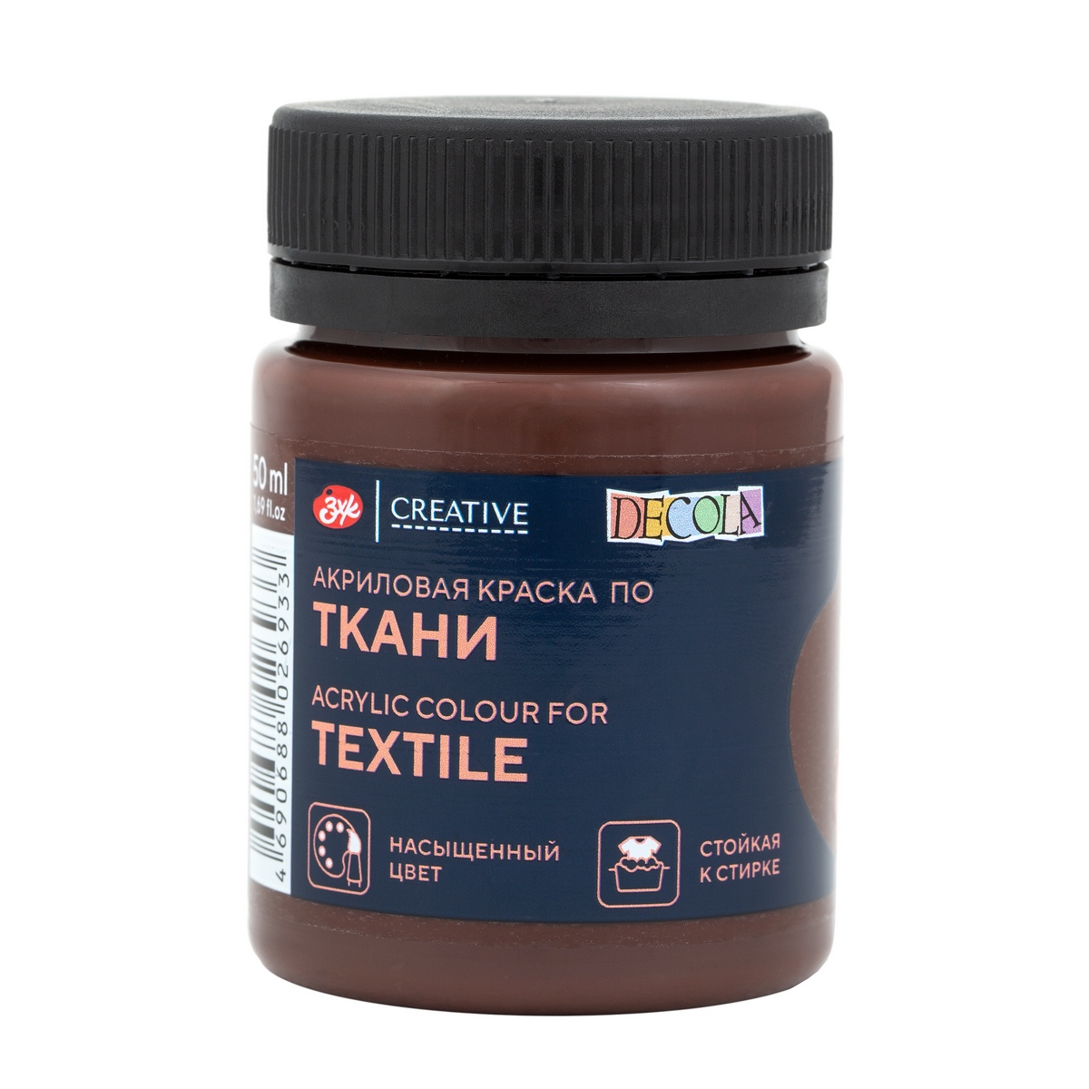 Краска акриловая по ткани DECOLA банка 50 мл, 446 Горький шоколад NP-4128446