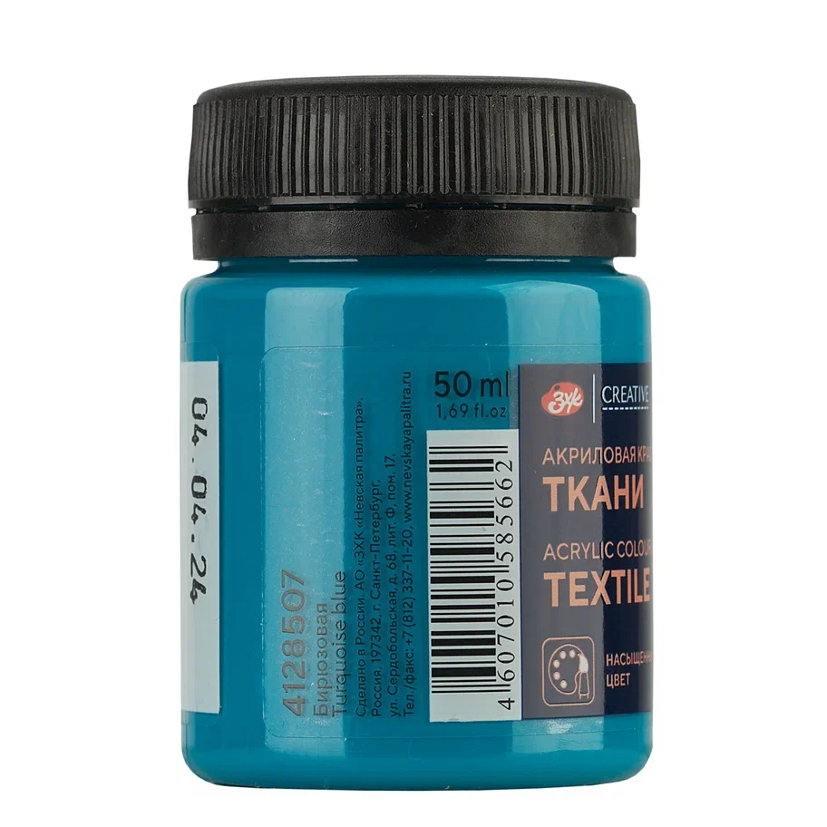 Краска акриловая по ткани DECOLA банка 50 мл, 507 Бирюзовая NP-4128507