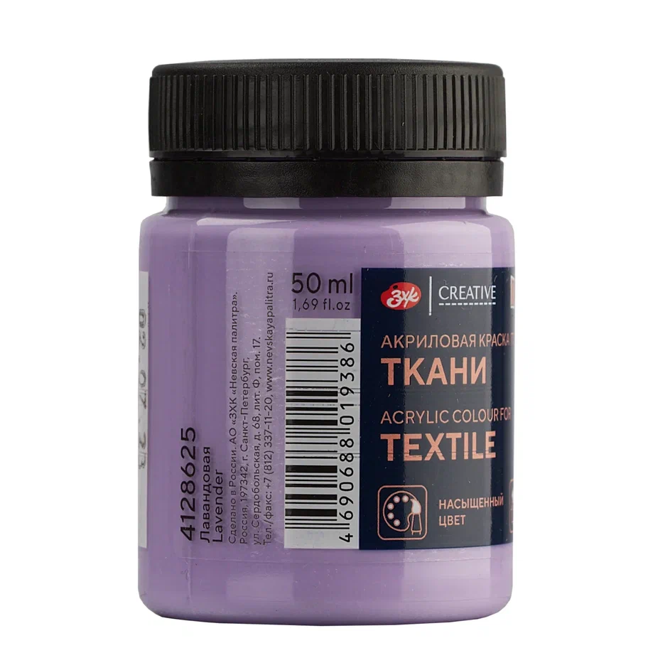 —Краска акриловая по ткани DECOLA банка 50 мл, 625 Лавандовая NP-4128625