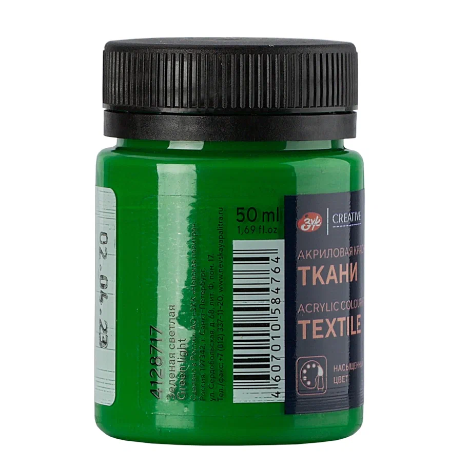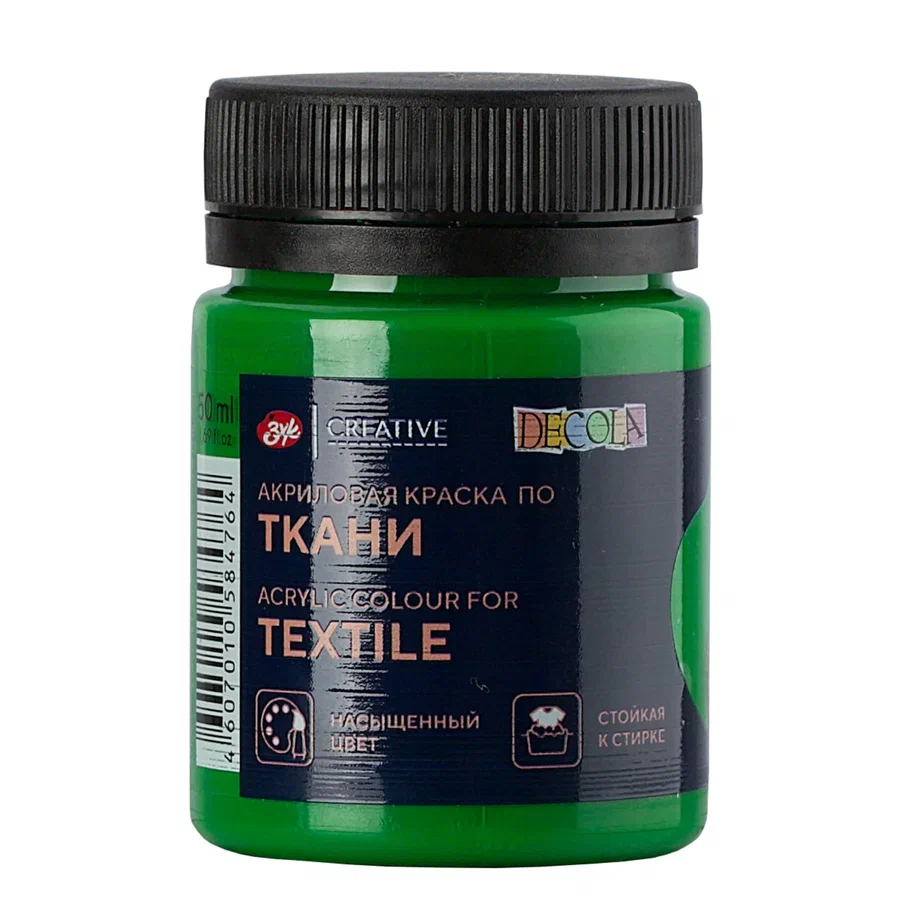Краска акриловая по ткани DECOLA банка 50 мл, 717 Зеленая светлая NP-4128717
