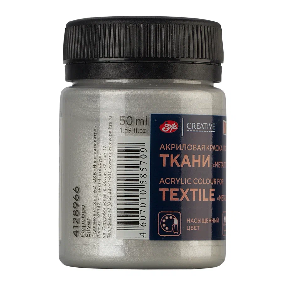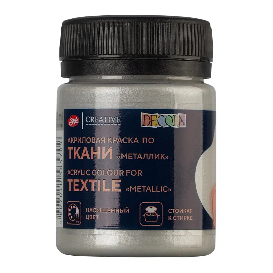 Краска акриловая по ткани DECOLA банка 50 мл, 966 Серебро NP-4128966