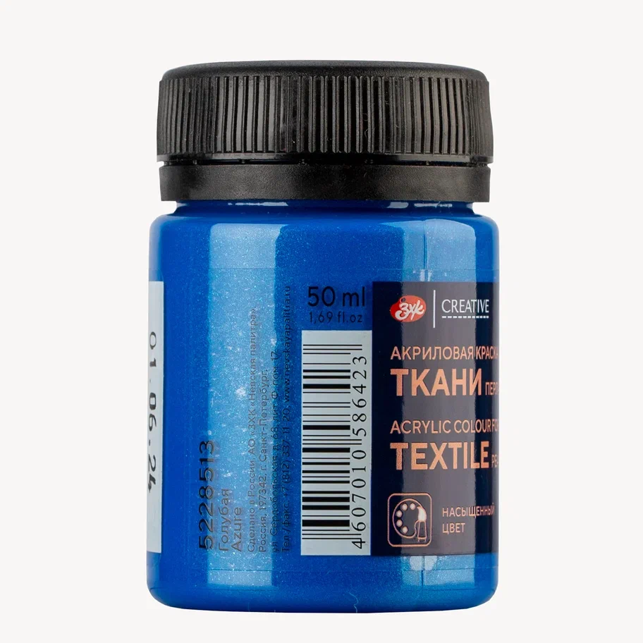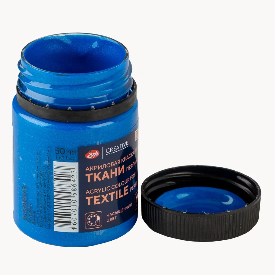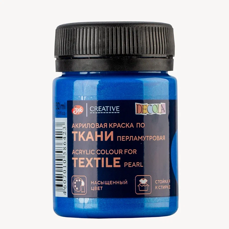 Краска акриловая по ткани DECOLA перламутровая, банка 50 мл, 513 Голубая NP-5228513
