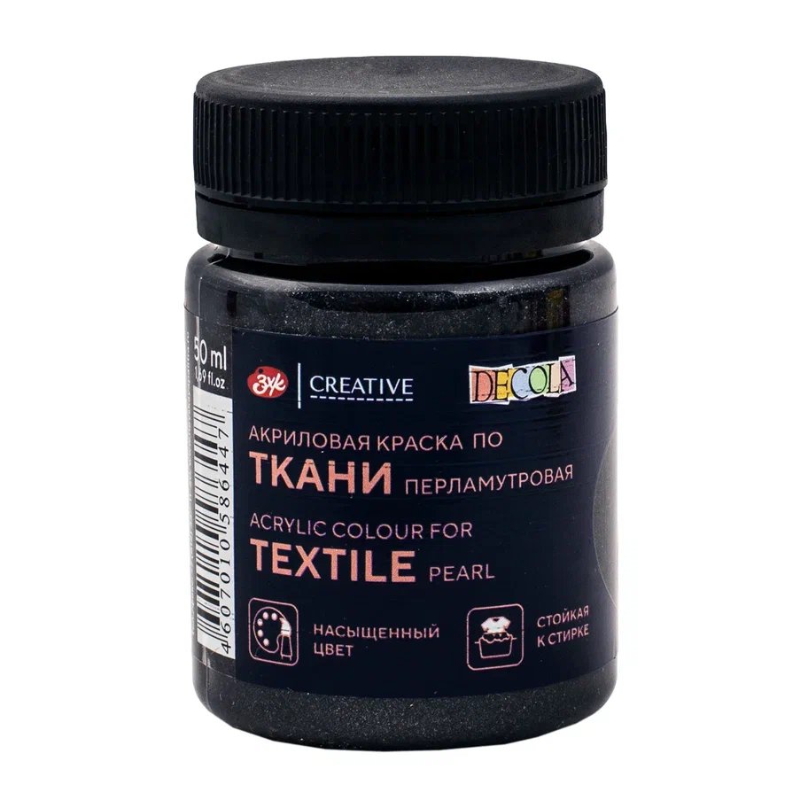 Краска акриловая по ткани DECOLA перламутровая, банка 50 мл, 810 Черная NP-5228810