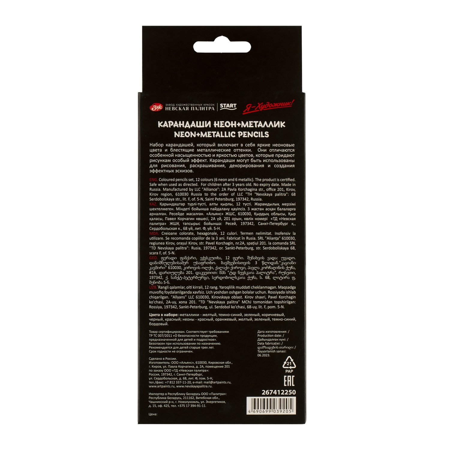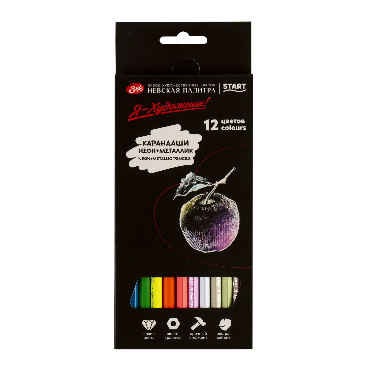 —Набор цветных карандашей Я-ХУДОЖНИК! 12 цв (6 неоновых + 6 металлик) в картонной упаковке NP-267412250