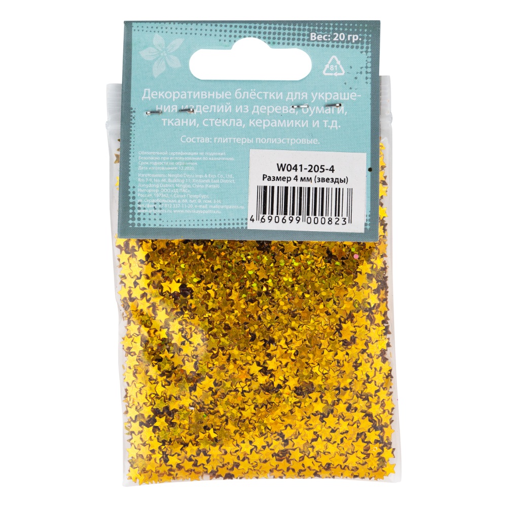 —Блестки декоративные DECOLA звезды размер 4 мм, 20 г, золото майя радужное NP-W041-205-4