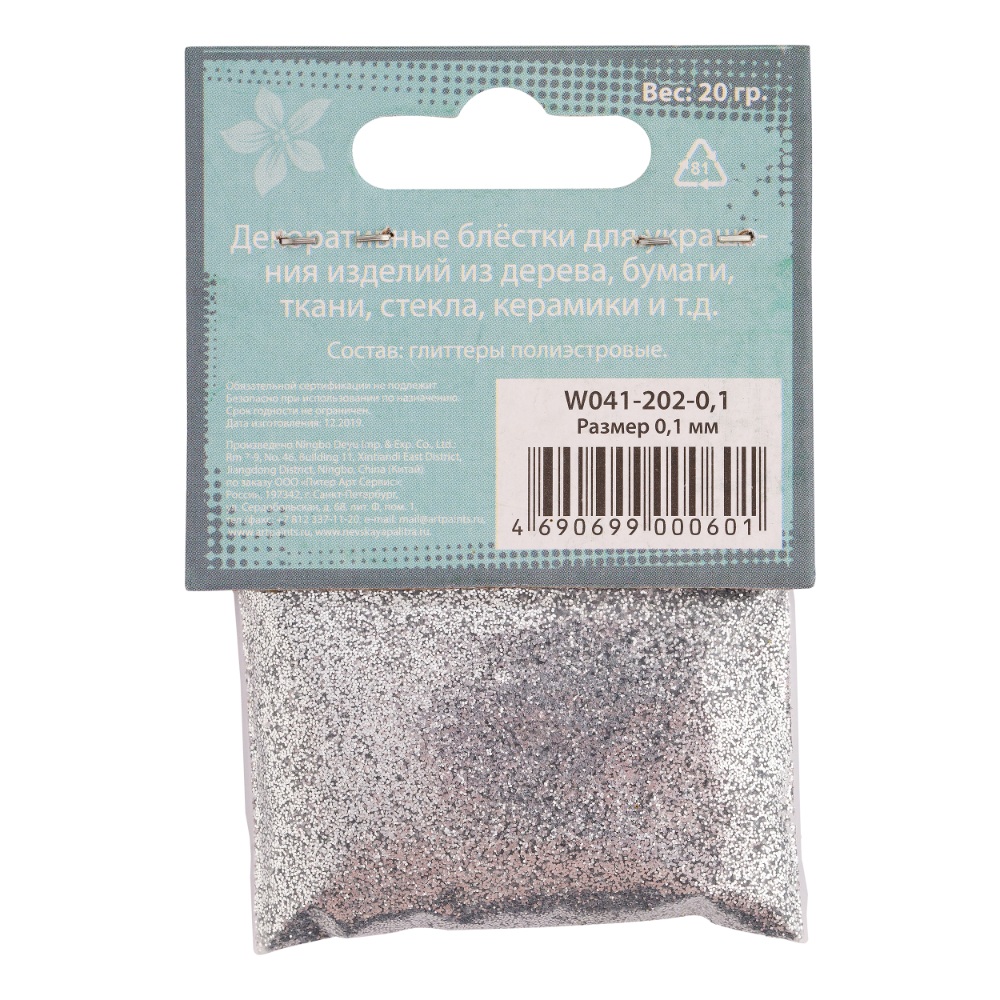 Блестки декоративные DECOLA размер 0.1 мм, 20 г, серебро NP-W041-202-0,1