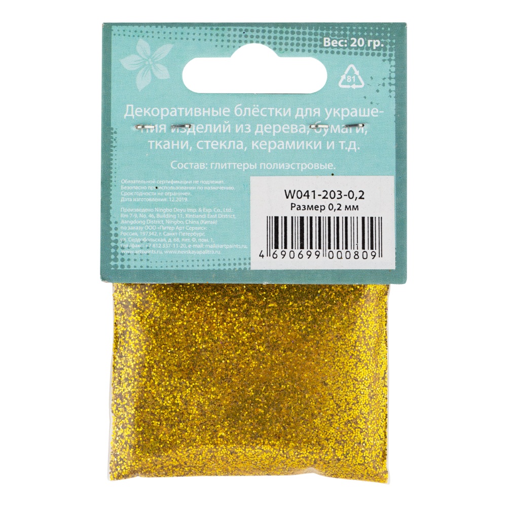 Блестки декоративные DECOLA размер 0.2 мм, 20 г, золото майя NP-W041-203-0,2