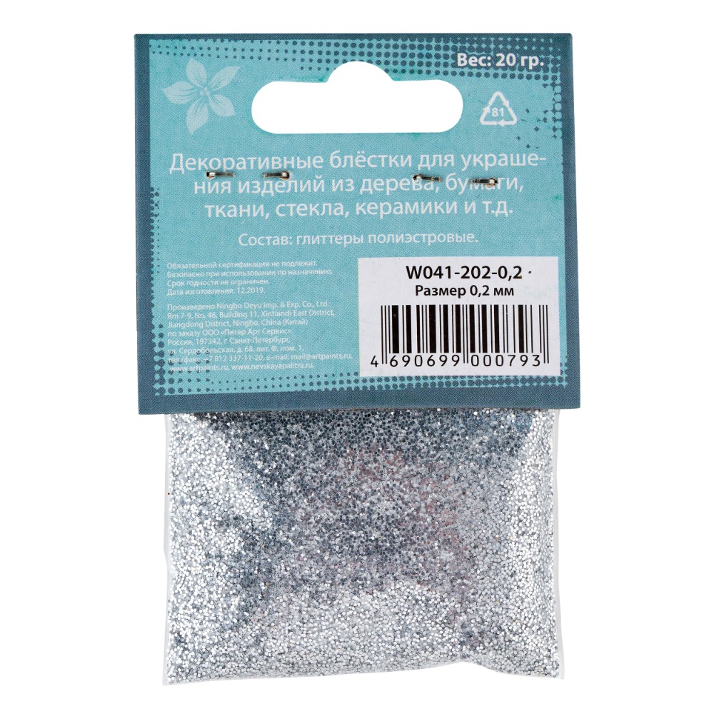 Блестки декоративные DECOLA размер 0.2 мм, 20 г, серебро NP-W041-202-0,2