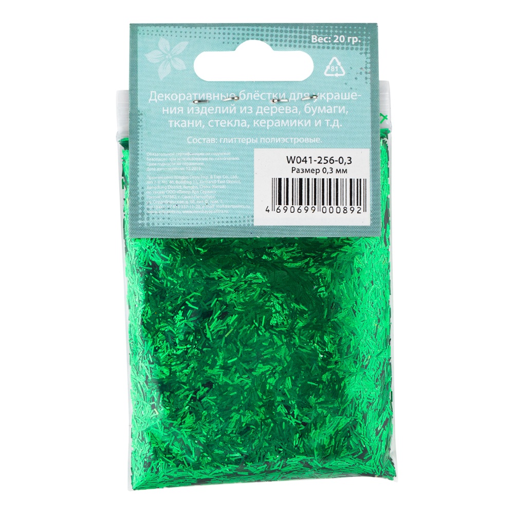 Блестки декоративные DECOLA размер 0.3 мм, 20 г, изумрудный радужный NP-W041-256-0,3