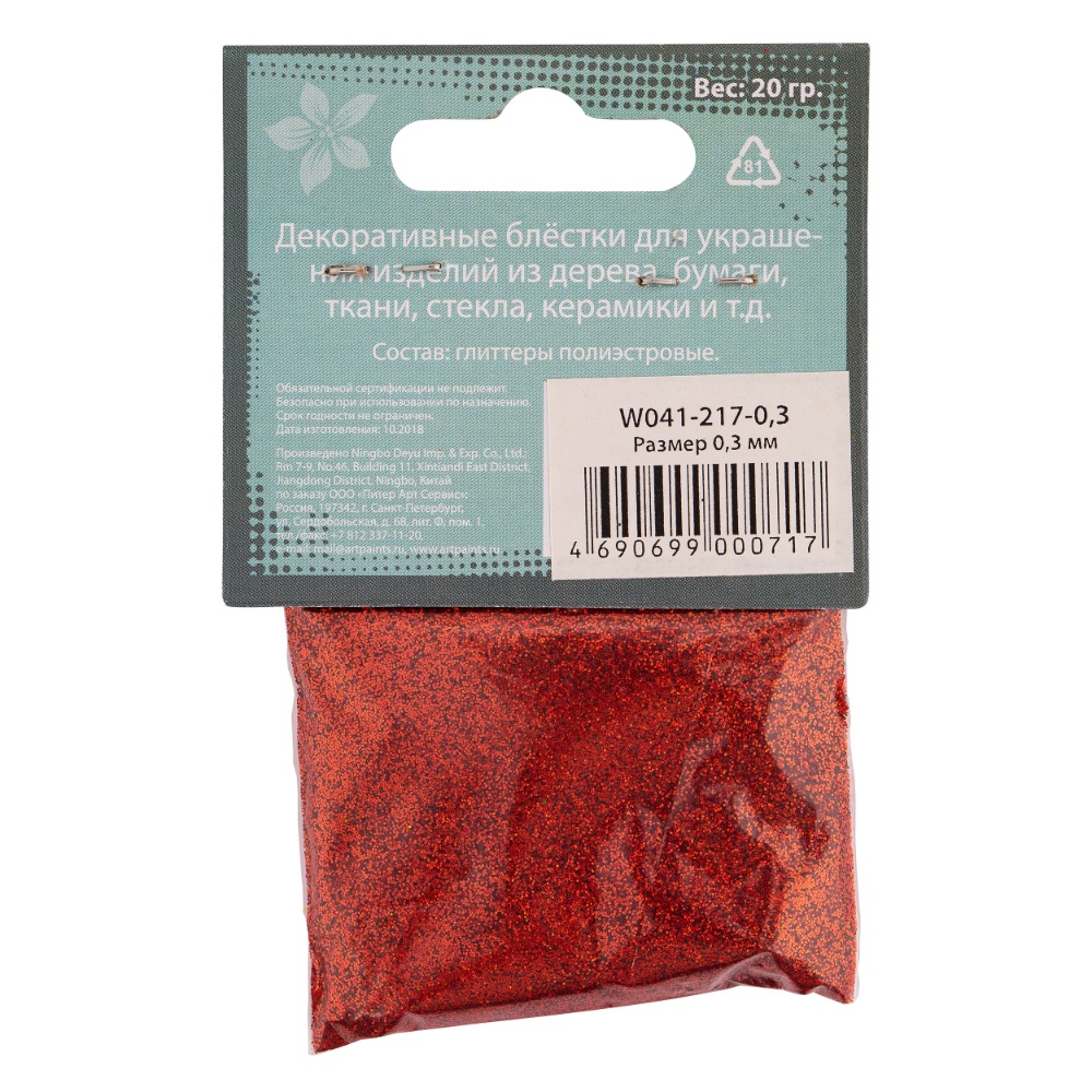 Блестки декоративные DECOLA размер 0.3 мм, 20 г, красный NP-W041-217-0,3