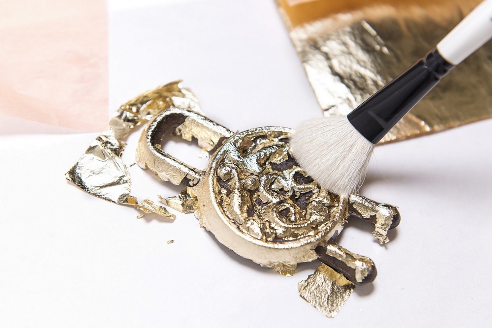 <li>Далее на поверхность переносится поталь с помощью кисти.</li>