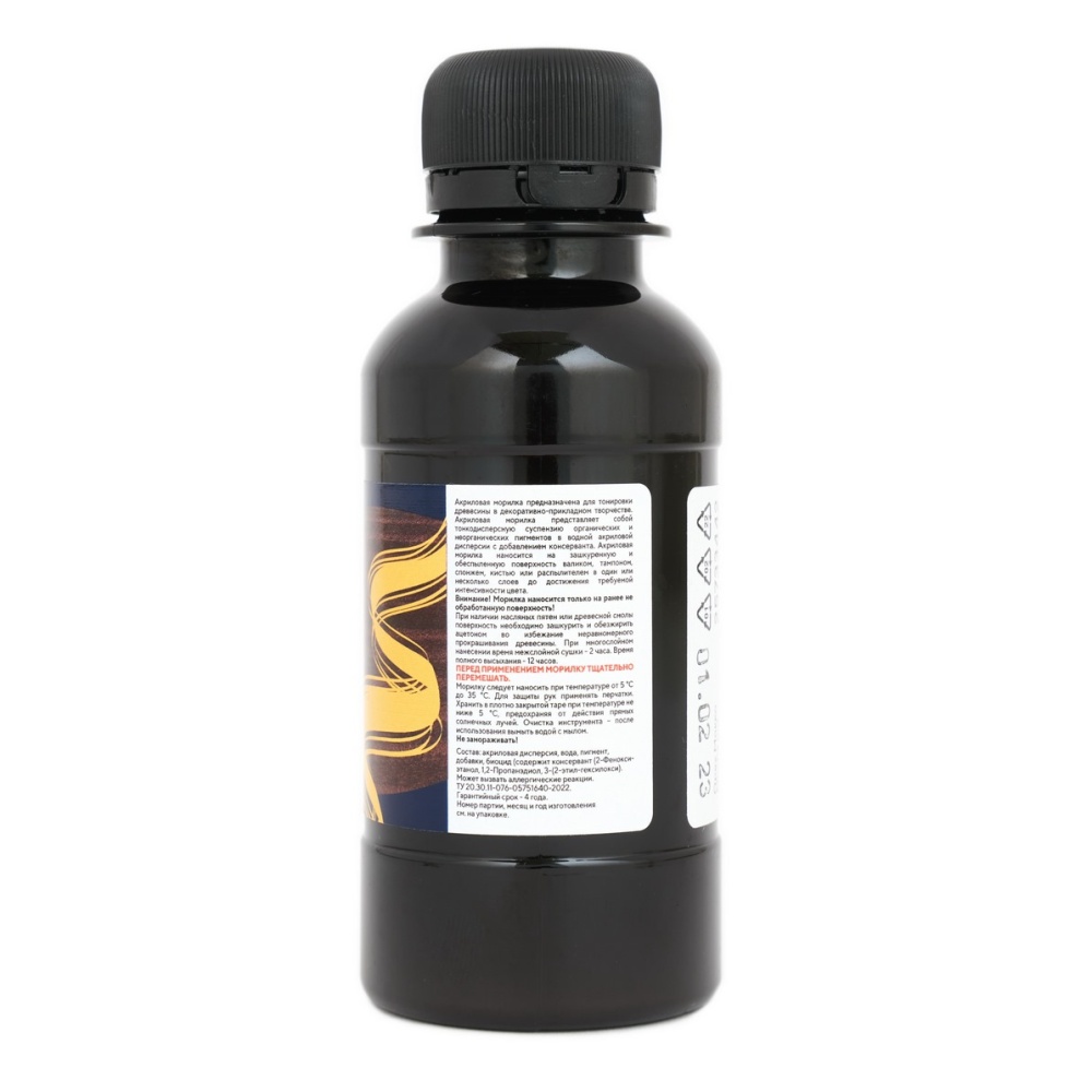 Средство удобно в работе: его можно наносить различными инструментами — от кисти и валика до спонжа или распылителя — на предварительно зашкуренную и очищенную поверхность. Регулировать интенсивность цвета легко путем наслоения: каждый новый слой делает тон более глубоким и насыщенным. Благодаря акриловой основе морилка быстро сохнет и образует устойчивое декоративное покрытие.