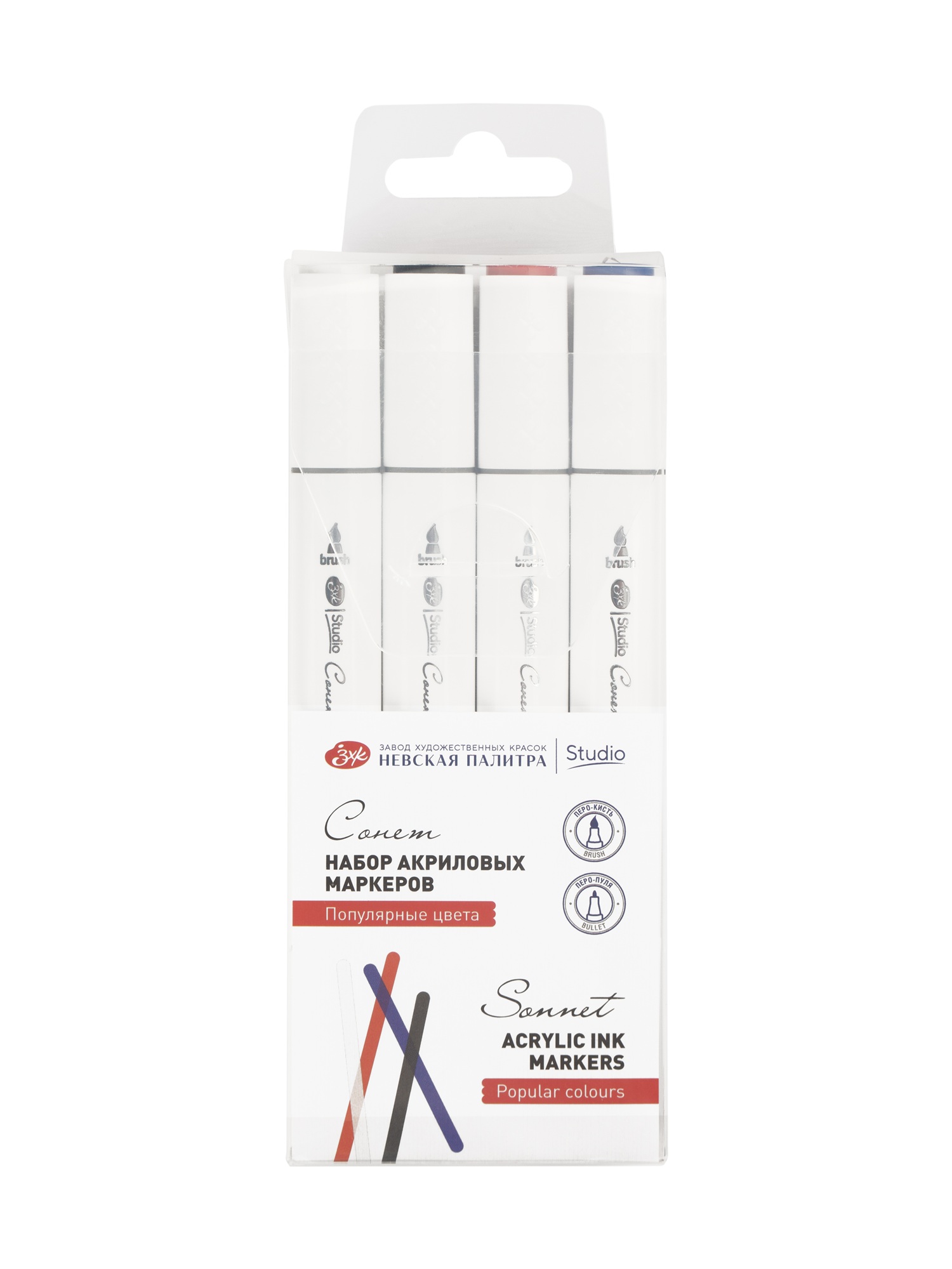 Набор акриловых маркеров СОНЕТ двусторонний, 4 цв популярные цвета, перо кисть/пуля, блистер NP-2731032328