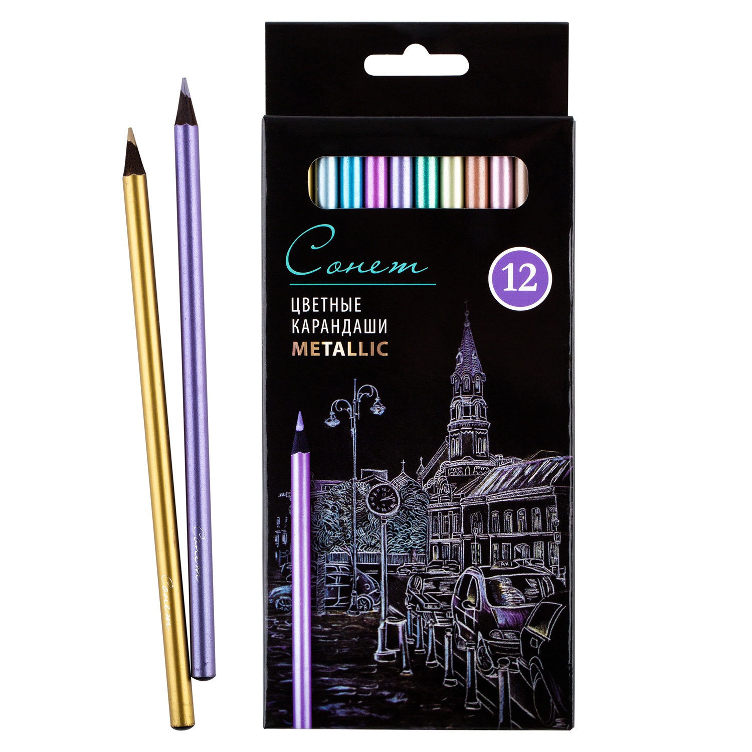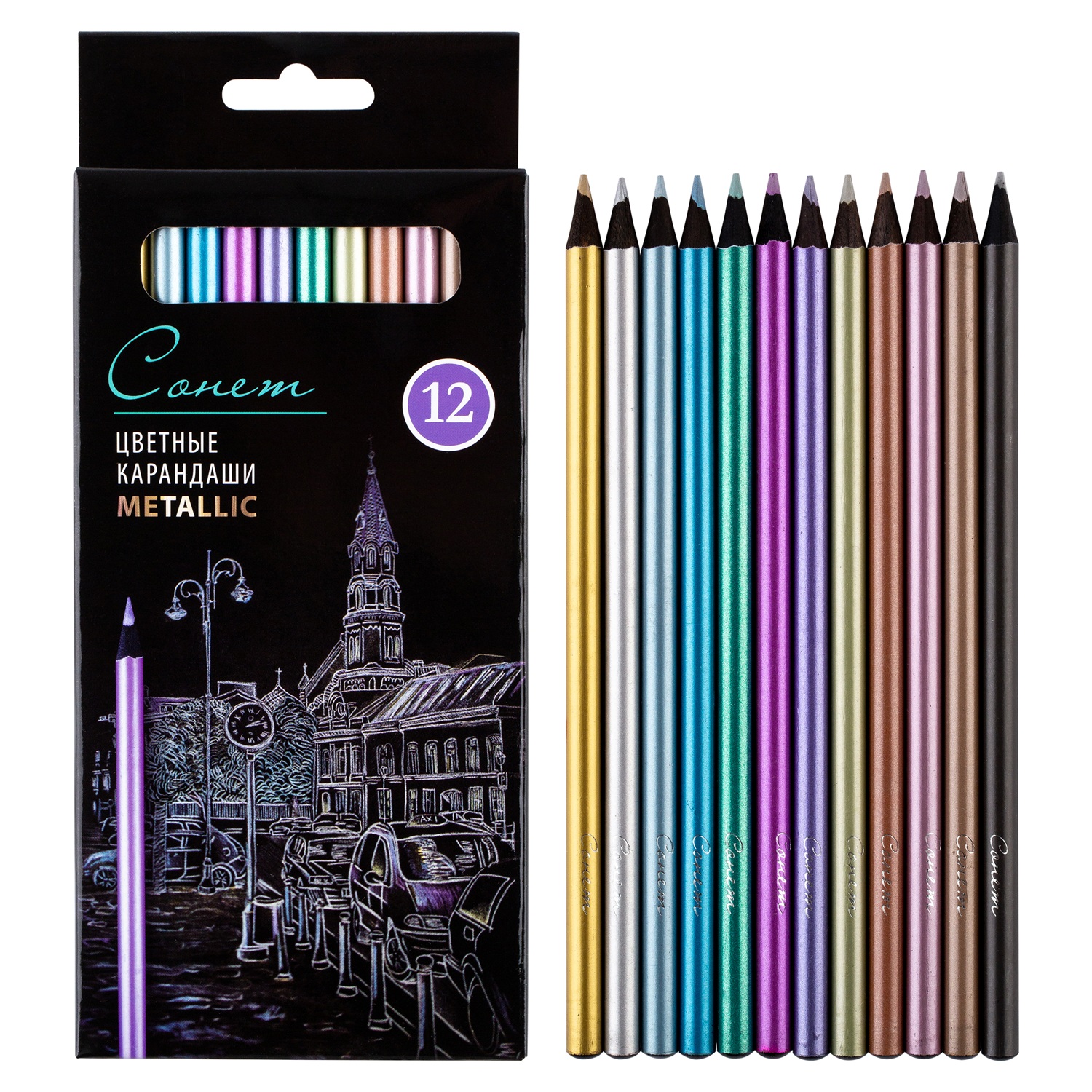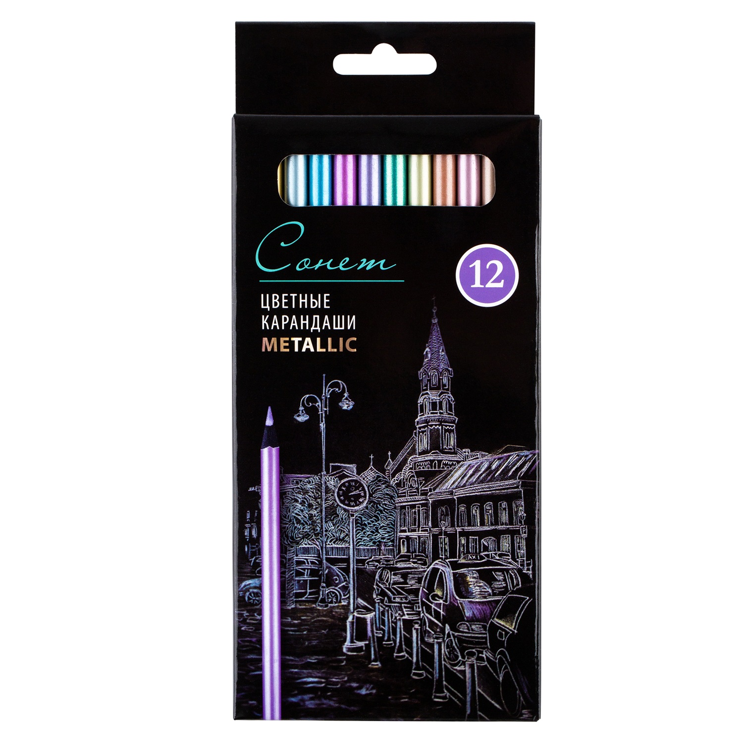 —Набор цветных карандашей СОНЕТ металлик 12 цв черное дерево NP-131411234