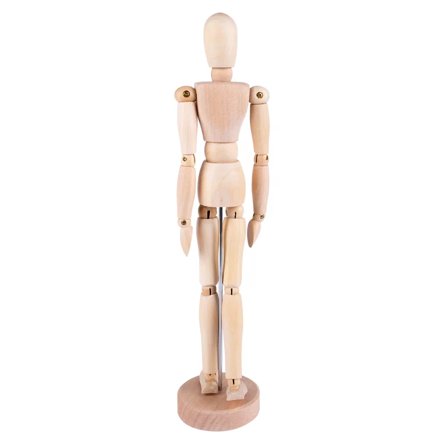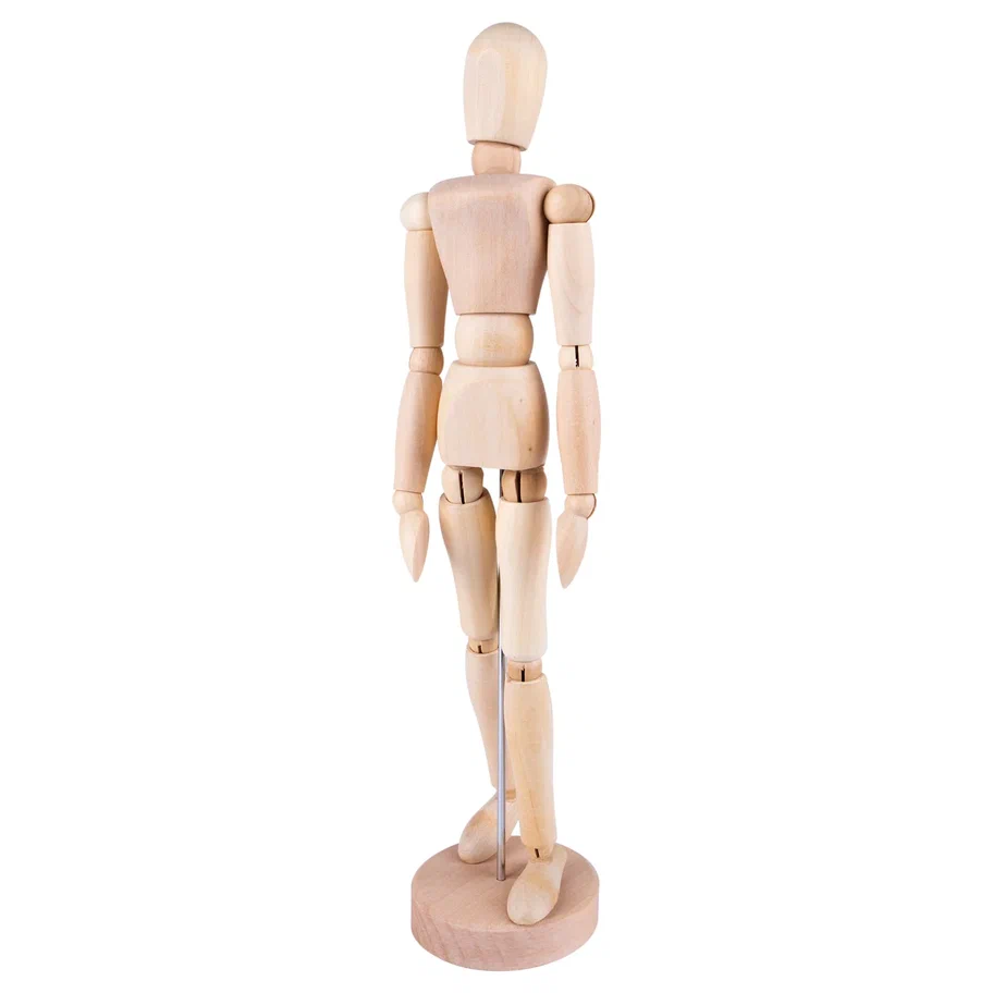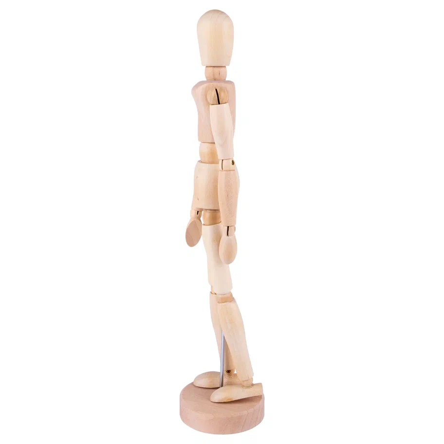 <p>Деревянный манекен человека высотой 30 см предназначен для художников и иллюстраторов, которым необходимо детально проработать пропорции и естественные позы в своих зарисовках. Шарнирные соединения в местах суставов позволяют точно имитировать движения человеческого тела, придавая фигуре практически любое положение. Это помогает понять механику движений и правильно распределить свет и тень на рисунке.</p>