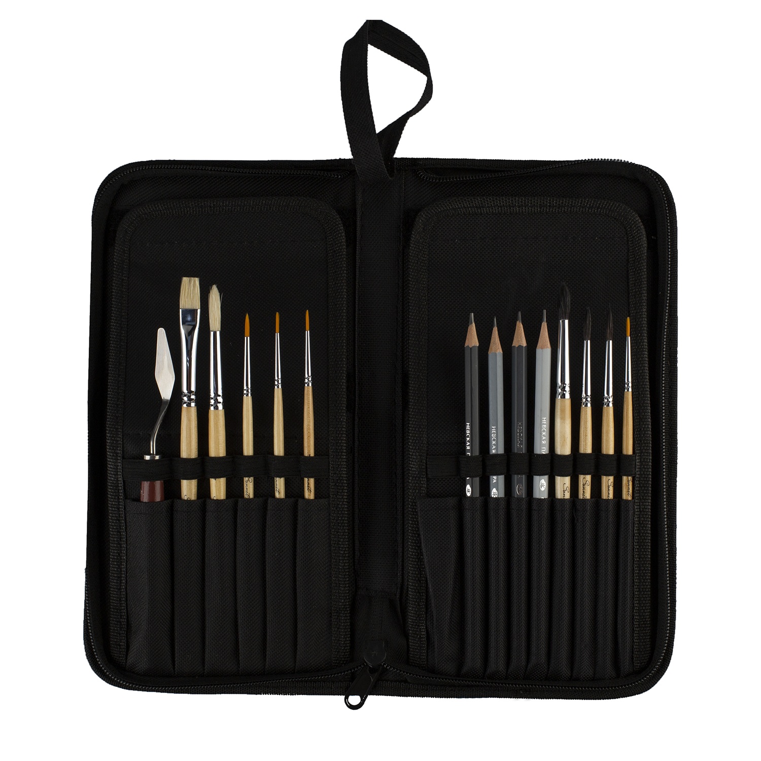 <p>Многофункциональный пенал «Сонет» на 15 отделений разработан специально для художников, ценящих эргономику и порядок на рабочем месте. Он предназначен для хранения и безопасной транспортировки кистей на коротких ручках длиной до 24 см. Изготовленный из прочной износостойкой ткани, пенал надежно закрывается на молнию, а встроенная петля позволяет удобно переносить его в руках или закрепить на сумке.</p>