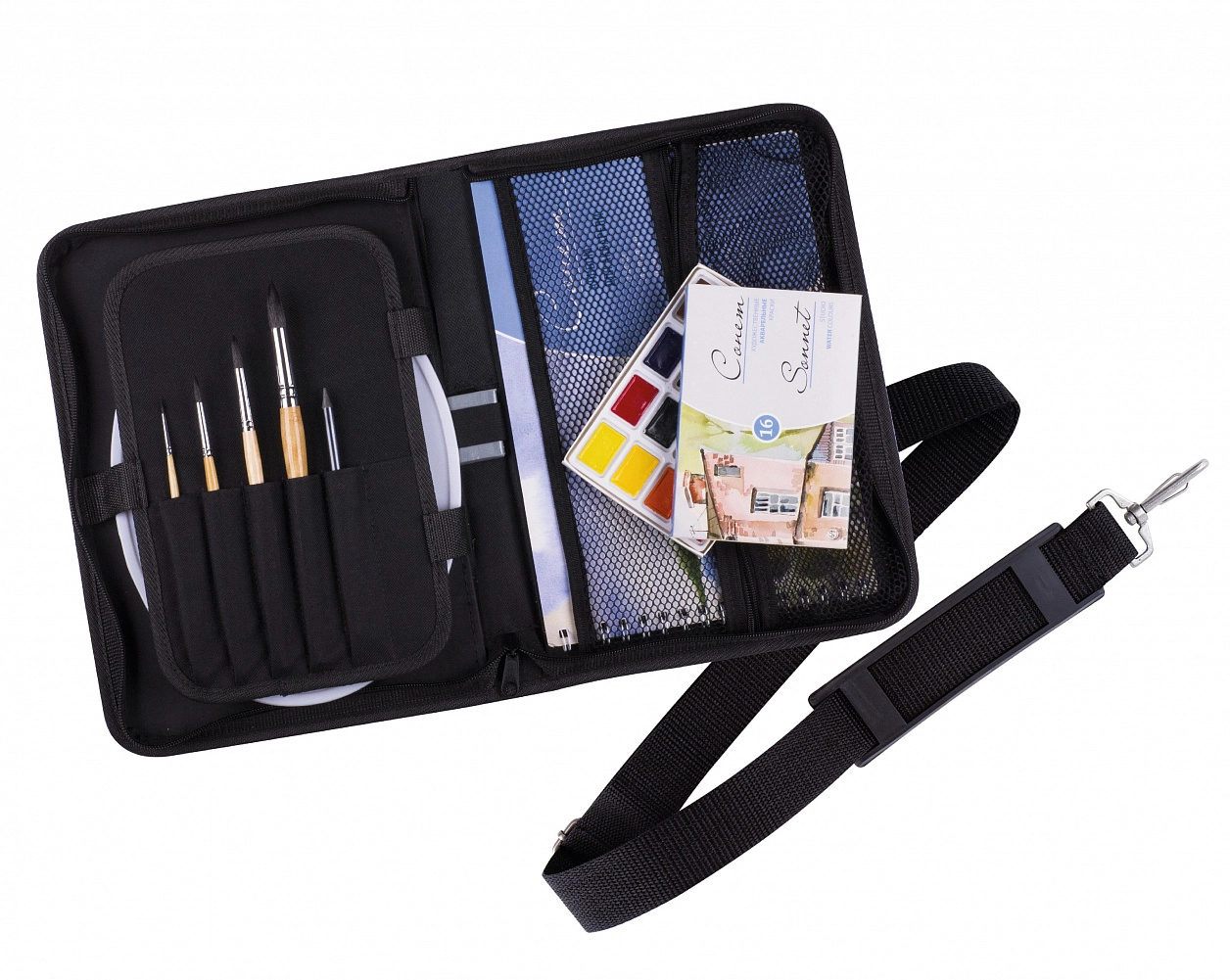 Внутренний органайзер предназначен для удобной переноски кистей, красок, палитр и других аксессуаров. <br>