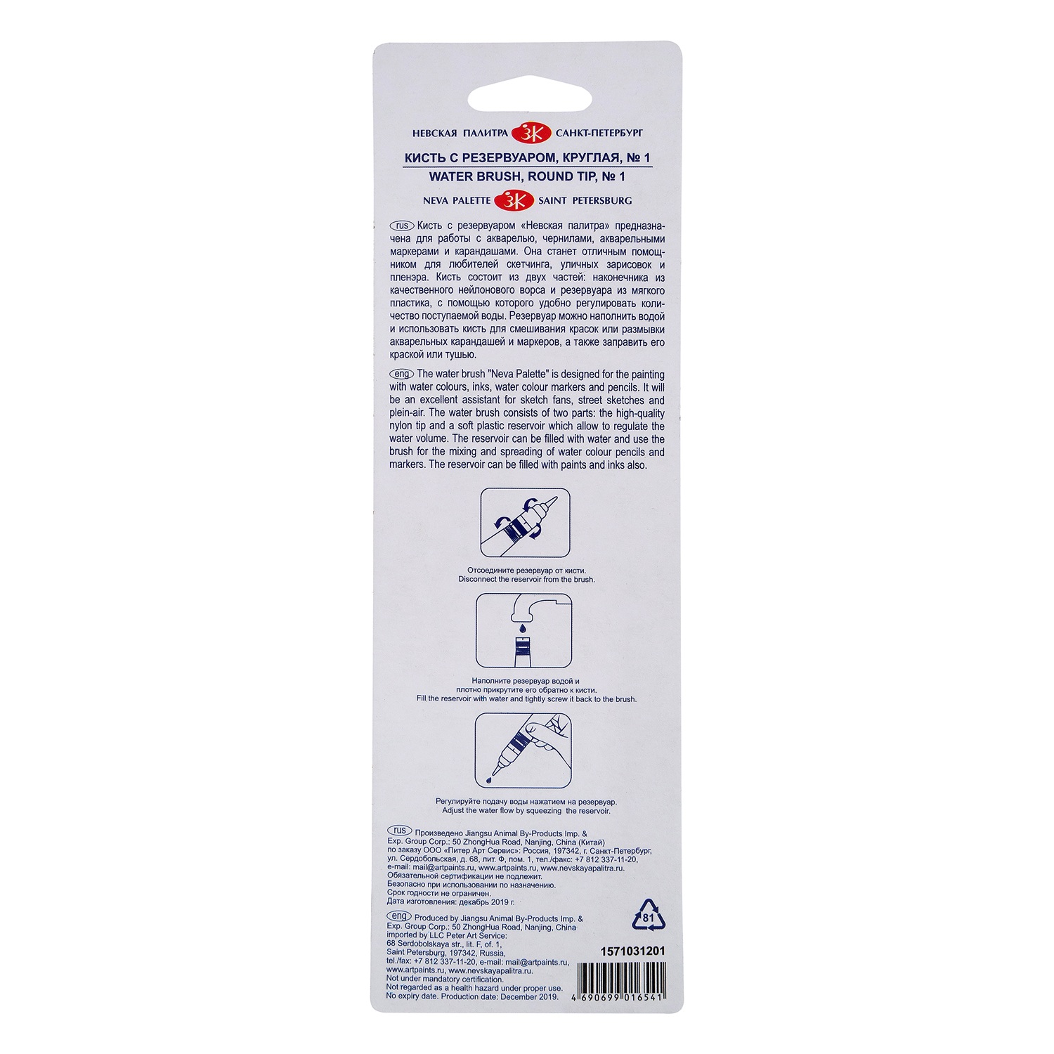 Кисть с резервуаром — это мобильный и функциональный инструмент, незаменимый для скетчинга, уличных зарисовок и работы на пленэрах. Резервуар выполнен из мягкого пластика, что позволяет легким нажатием точно регулировать количество воды, поступающей к ворсу. Наконечник изготовлен из качественного белого нейлона без пропитки, который отлично держит форму и отличается долговечностью.