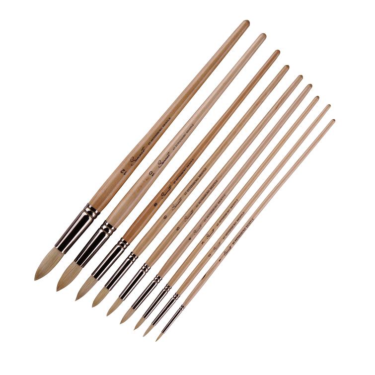 <p>Инструмент отличается высокой долговечностью: натуральная щетина устойчива к интенсивному трению и воздействию разбавителей. Круглая форма №8 является оптимальным размером для прорисовки средних деталей, заполнения небольших участков цветом и нанесения лаковых покрытий. Эргономичная ручка обеспечивает комфортный захват, снижая усталость руки при длительной работе, что делает кисть подходящим выбором как для учебных заданий, так и для серьезных творческих проектов.</p>