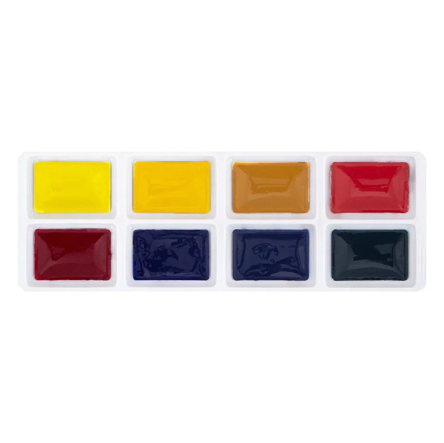 <li><strong>Сбалансированная палитра:</strong> Набор включает 8 базовых цветов, 7 из которых — монопигментные. Это позволяет учащимся изучать основы колористики и получать чистые, насыщенные оттенки при смешивании.</li>