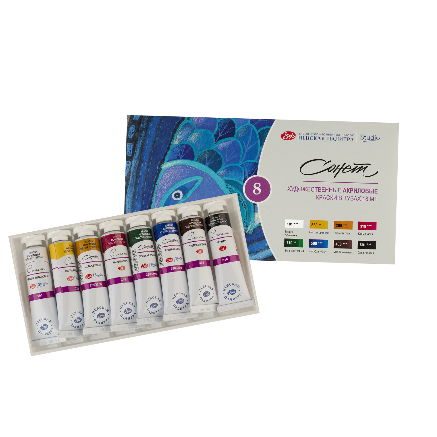 Набор акриловых красок СОНЕТ 8 шт х 18 мл, картон NP-28412523