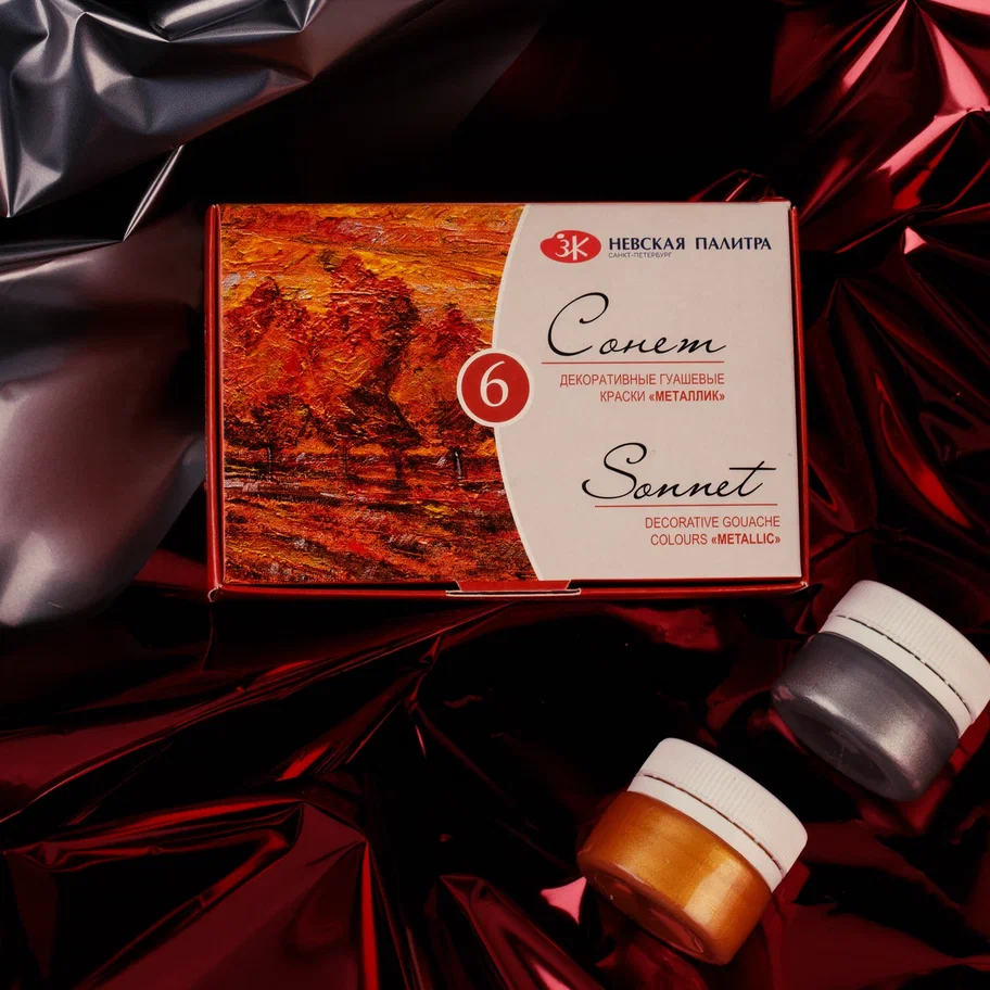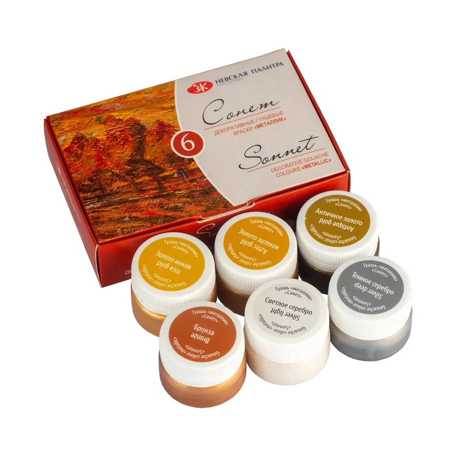 Набор гуаши СОНЕТ металлик 6 шт x 20 мл, картон NP-3641401