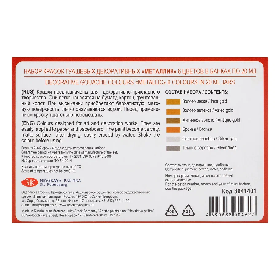 —Набор гуаши СОНЕТ металлик 6 шт x 20 мл, картон NP-3641401