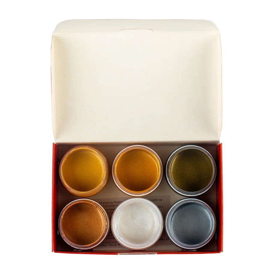 Палитра из 6 оттенков позволяет значительно расширить творческие возможности при создании декоративных панно, открыток или добавлении ярких акцентов в классическую живопись. Краски хорошо смешиваются между собой, позволяя добиваться новых интересных переливов и нюансов в работе.