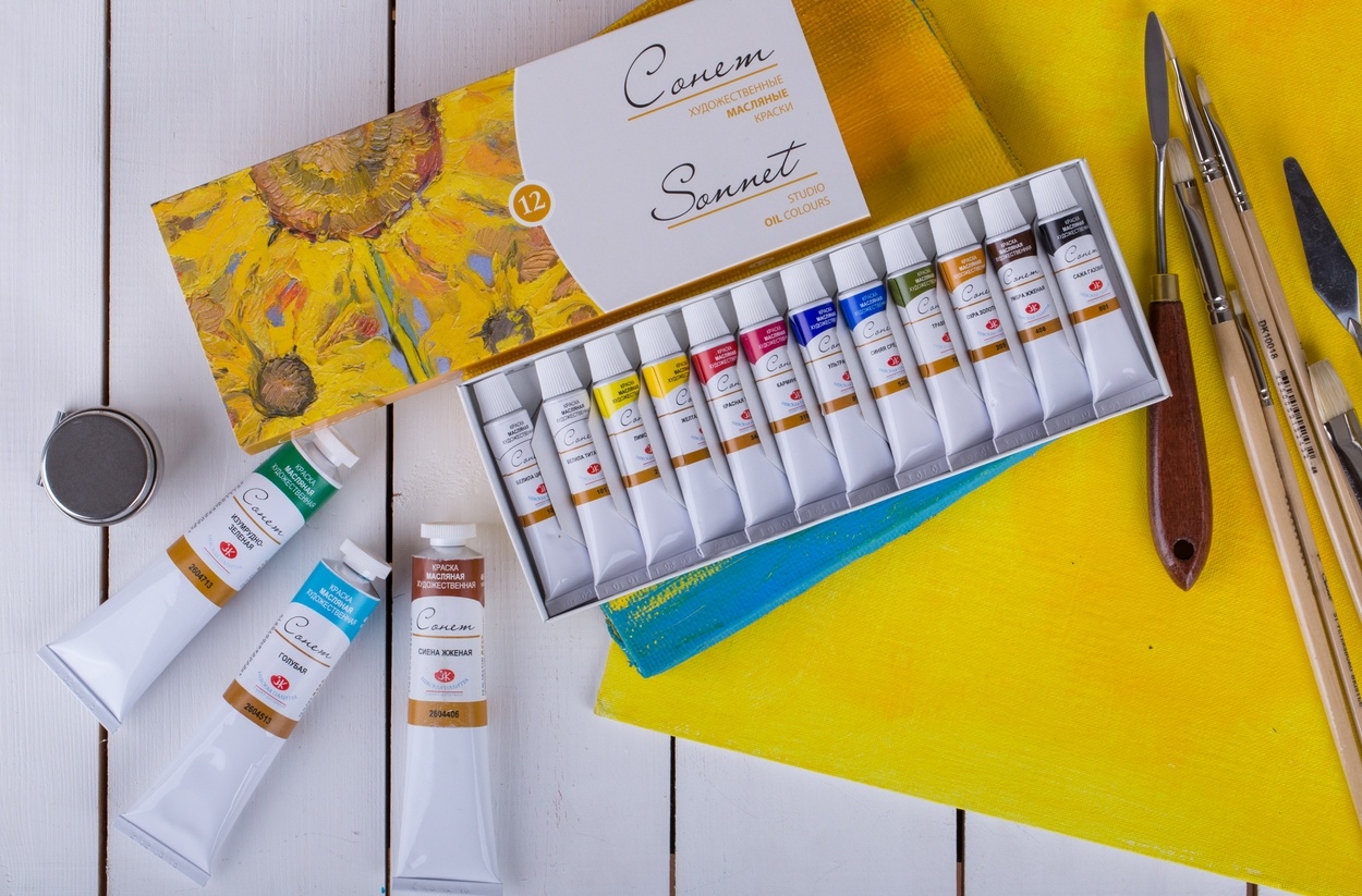 Серия масляных красок «Сонет» выпускается одним из ведущих российских производителей художественных материалов, Заводом художественных красок «Невская палитра».<br>