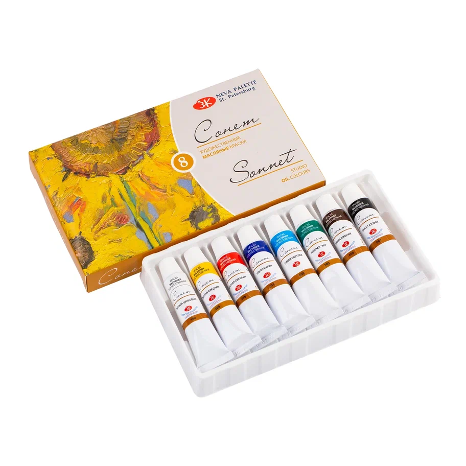 Набор художественных масляных красок **«Сонет»** разработан специально для начинающих художников. Эти краски сочетают в себе простоту использования и высокое качество, что делает их идеальным выбором для первых шагов в живописи.