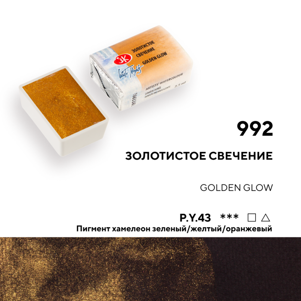—Акварель БЕЛЫЕ НОЧИ кювета 2.5 мл, 992 Золотистое свечение NP-1911992