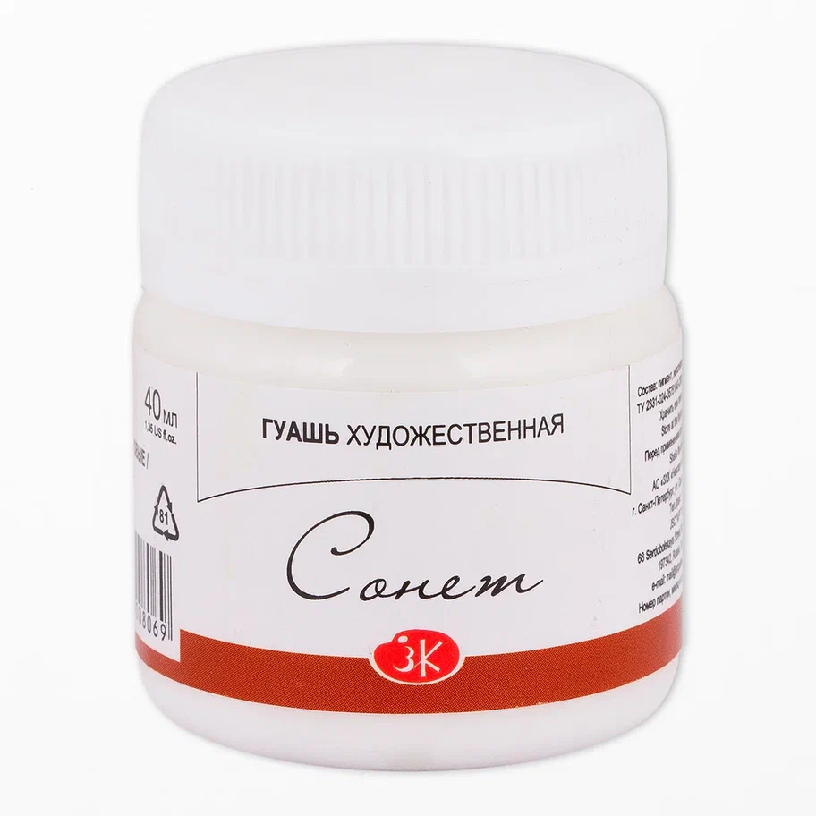 —Гуашь СОНЕТ банка 40 мл, 101 Белила титановые NP-3620101
