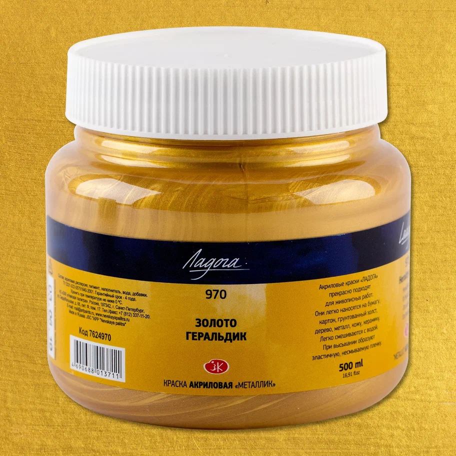 Краска акриловая ЛАДОГА 500 мл, 970 Золото геральдик NP-7624970