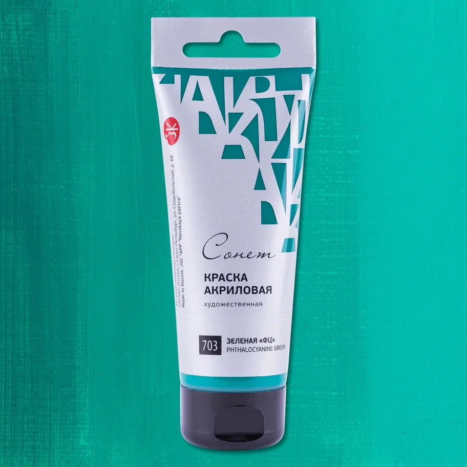 —Краска акриловая СОНЕТ туба 75 мл, 703 Зеленая ФЦ NP-28109703