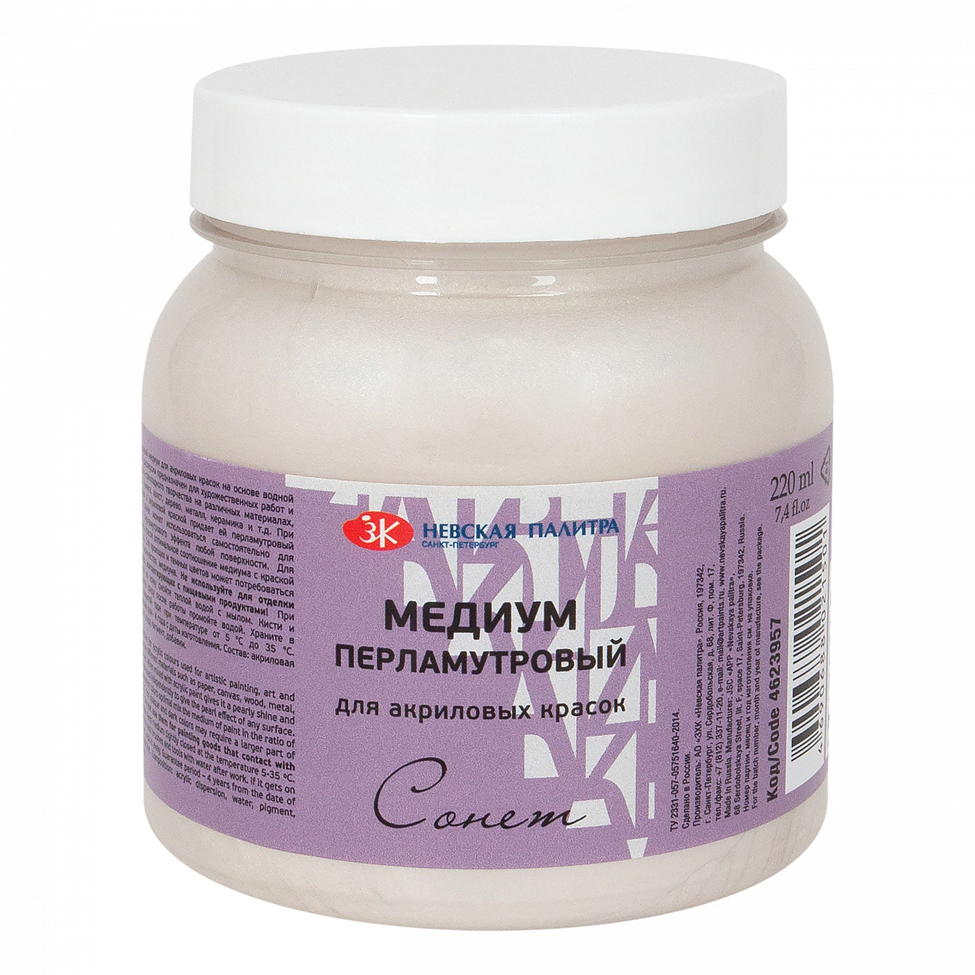 Перламутровый медиум — это универсальное средство для художественных и декоративно-прикладных работ. Он предназначен для придания перламутрового блеска любой поверхности и может быть использован с различными видами акриловых красок.