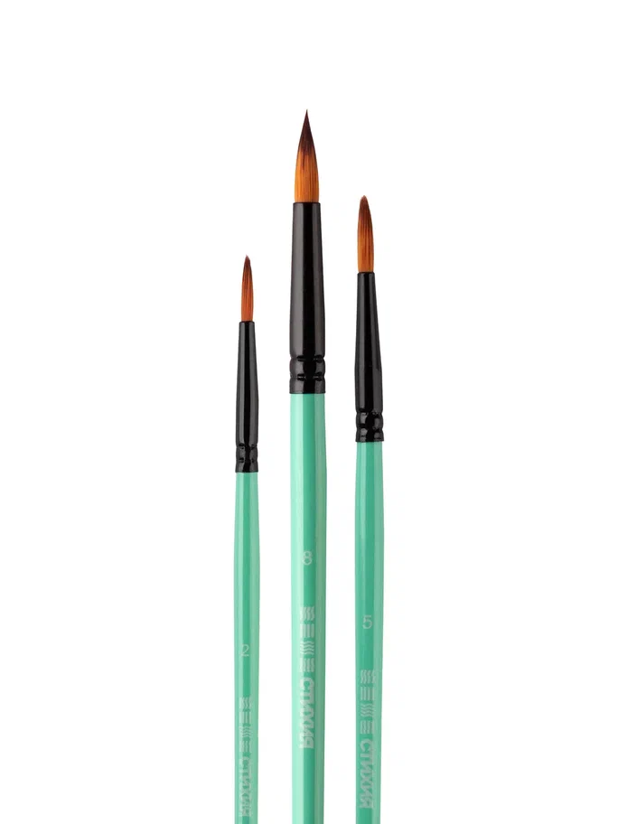 Набор из трёх круглых кистей «Стихия» — это отличный выбор для работы с акварелью и гуашью. Эти кисти сочетают в себе высокое качество, универсальность и удобство, что делает их идеальными как для начинающих, так и для опытных художников.