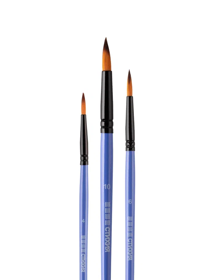 Набор из трёх круглых кистей «Стихия» — это отличный выбор для работы с акварелью и гуашью. Эти кисти сочетают в себе высокое качество, универсальность и удобство, что делает их идеальными как для начинающих, так и для опытных художников.