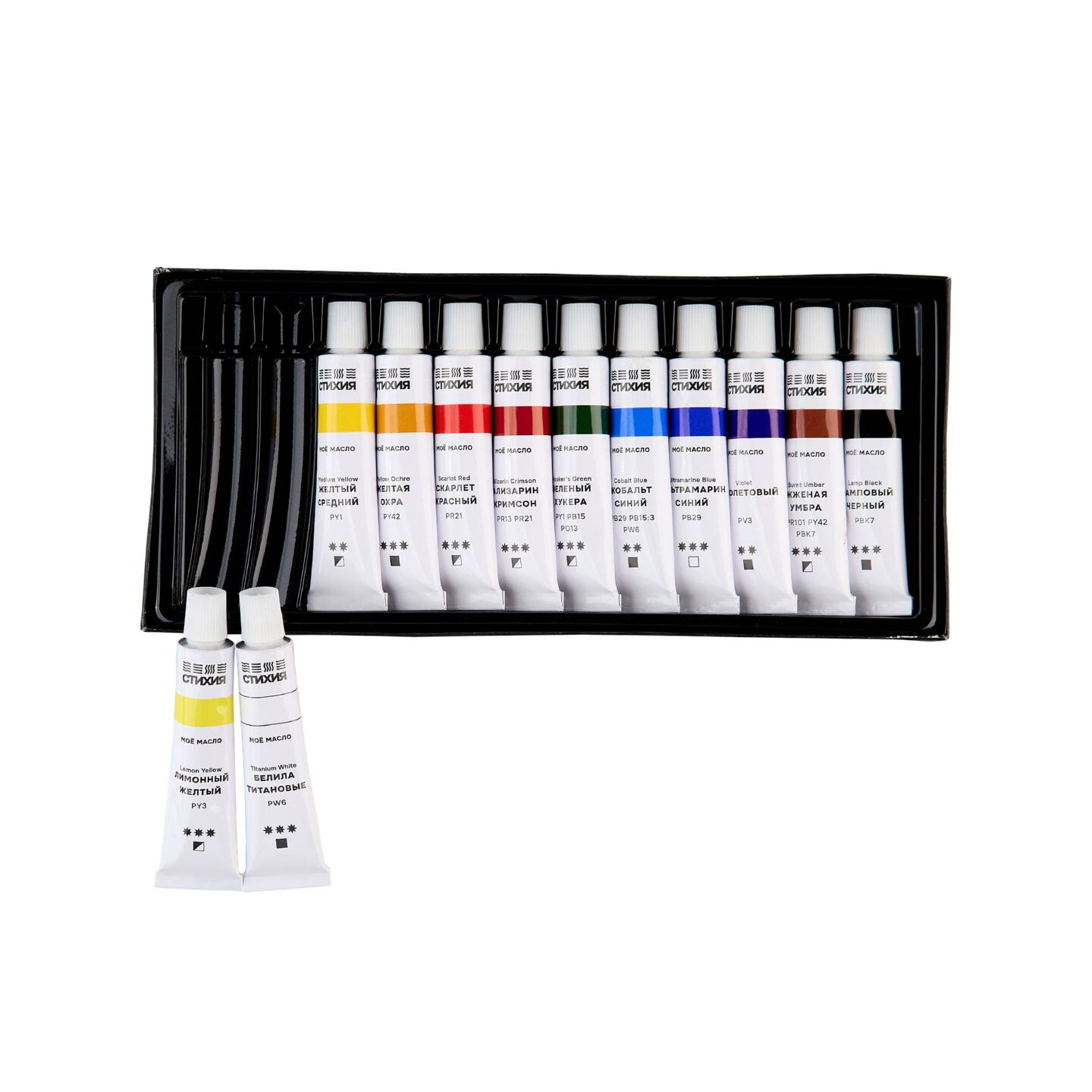 Набор масляных красок СТИХИЯ – это сбалансированная палитра из 12 цветов, подобранная и созданная в сотрудничестве с художниками.