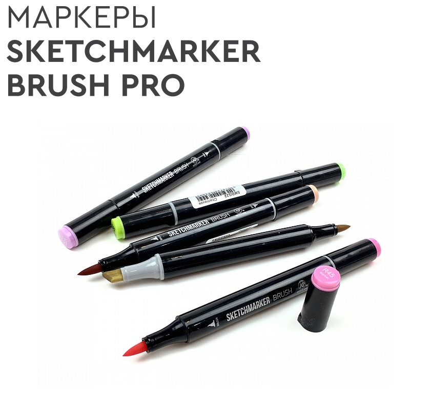 Линейка профессиональных маркеров SKETCHMARKER BRUSH PRO на спиртовой основе: с мягким пером-кистью и широким наконечником - долото.