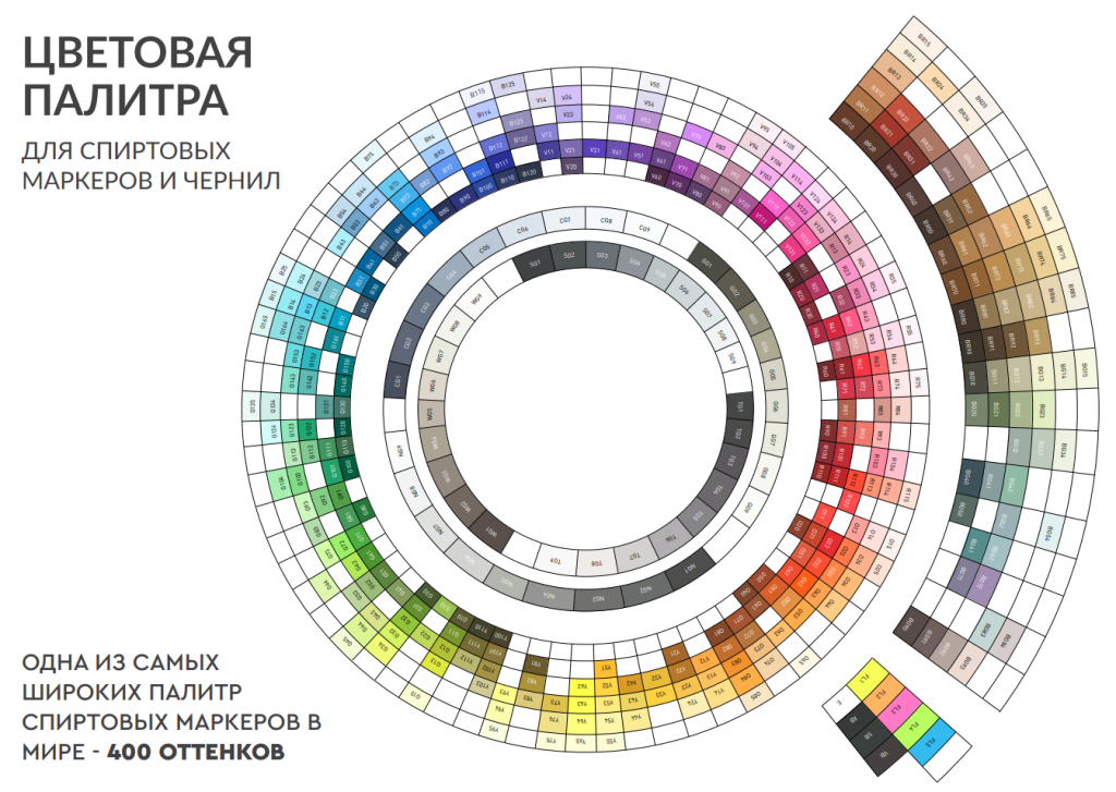 Маркеры выпускаются как поштучно, так и в наборах от 6 до 96 штук.